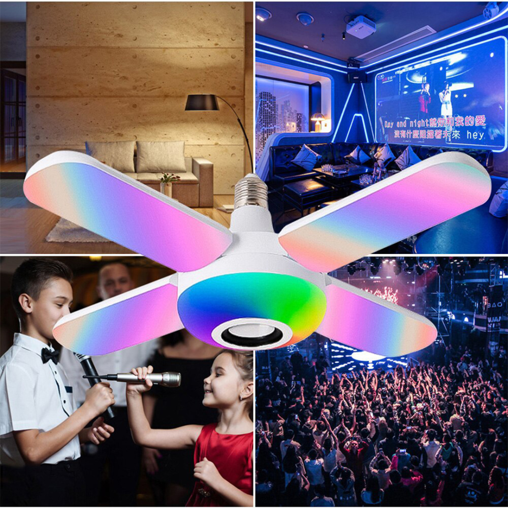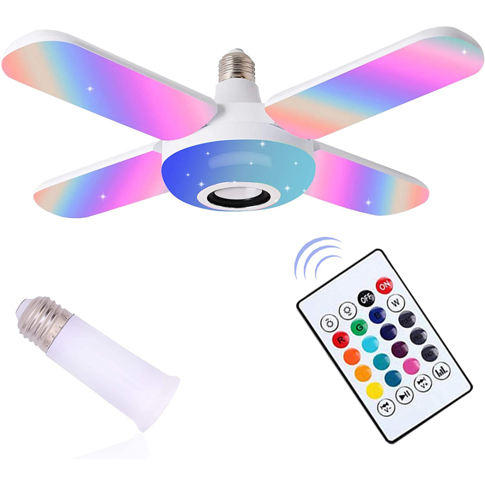 - اسم المنتج: لمبه ليد على شكل مروحة بسماعة 2 في 1